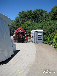 - Lorsqu'un évènement débute sur l'heure du dîner, on s'attendrait à ce que la vidange des toilettes chimiques ait été faite le matin. Mais non, elle a eu lieu alors que le site se remplissait déjà de festivaliers... Je vous laisse imaginer l'odeur qui se mélangeait à celle de cuisson...